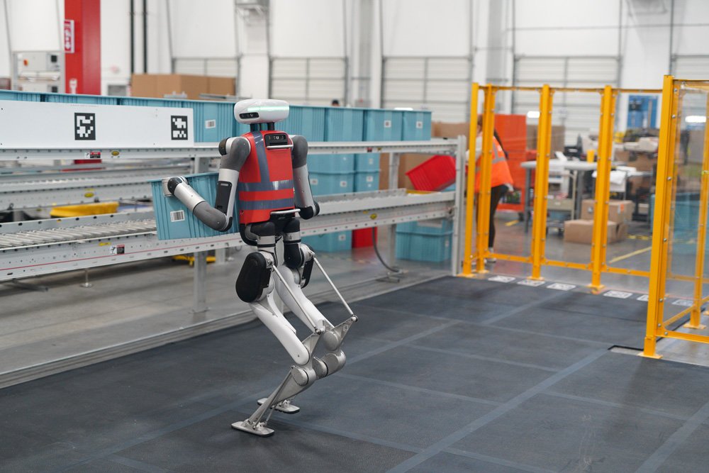 Digit — which is 5'9" tall, weighs 140 pounds and can lift up to 35 pounds — is designed to work in human spaces and can be easily adapted to various warehouse tasks through software updates.